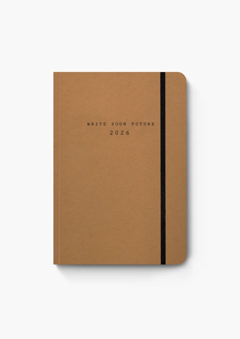 Οικολογικό ημερήσιο ημερολόγιο 2026 με έμφαση στα τυπογραφικά στοιχεία και χειροποίητη, βιώσιμη βιβλιοδεσία με ανακυκλωμένο κάλυμμα.