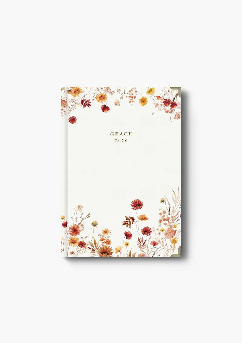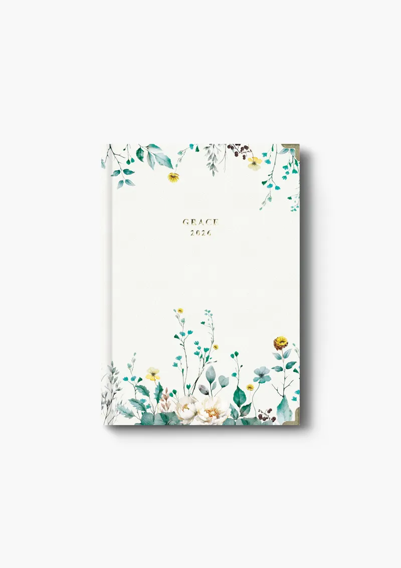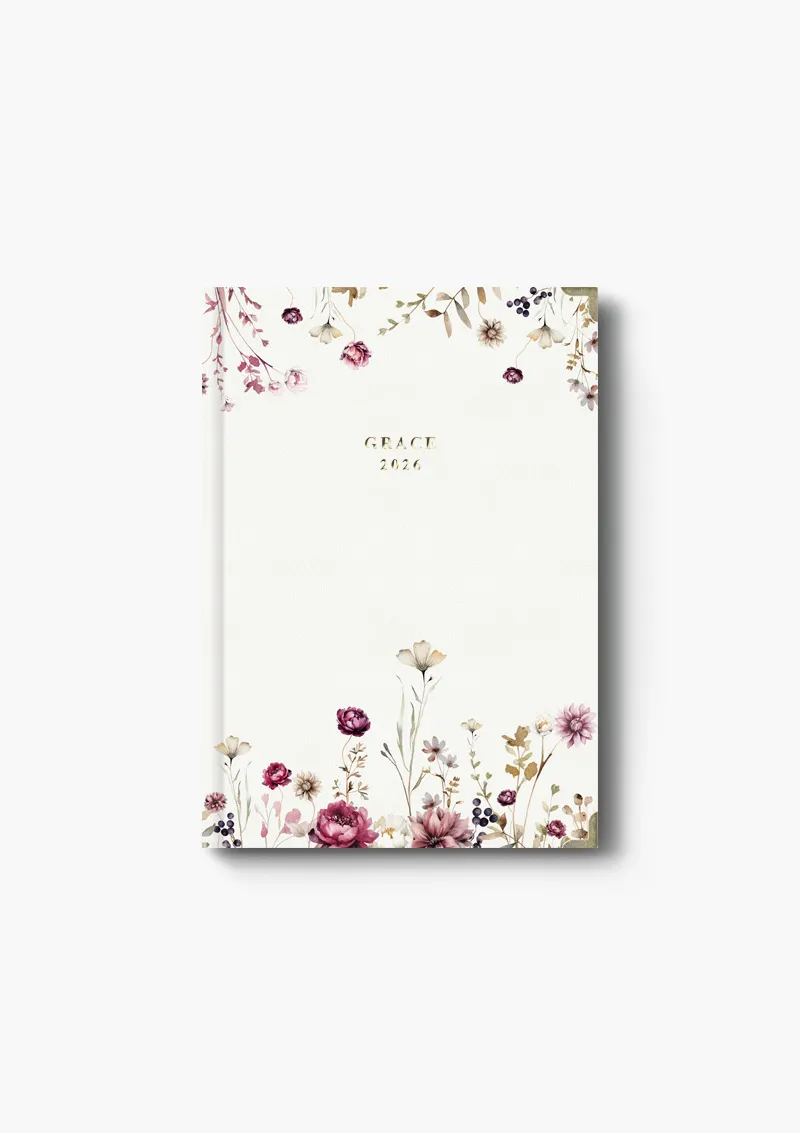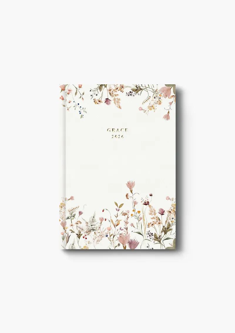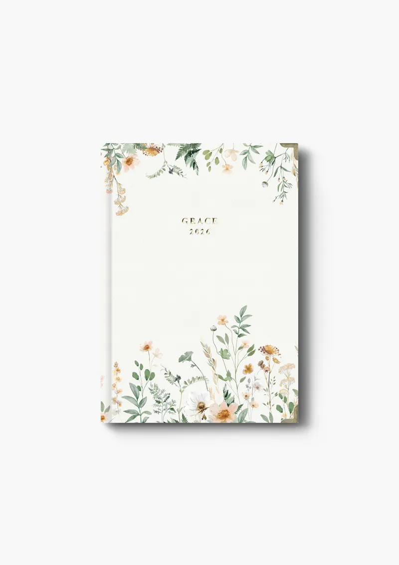 Grace ημερολόγιο αφιερωμένο στην φύση και σε κάθε της έκφανση, σε κάθε της εποχή. Ζωγραφισμένο εξώφυλλο με σχέδια αγριολούλουδων.